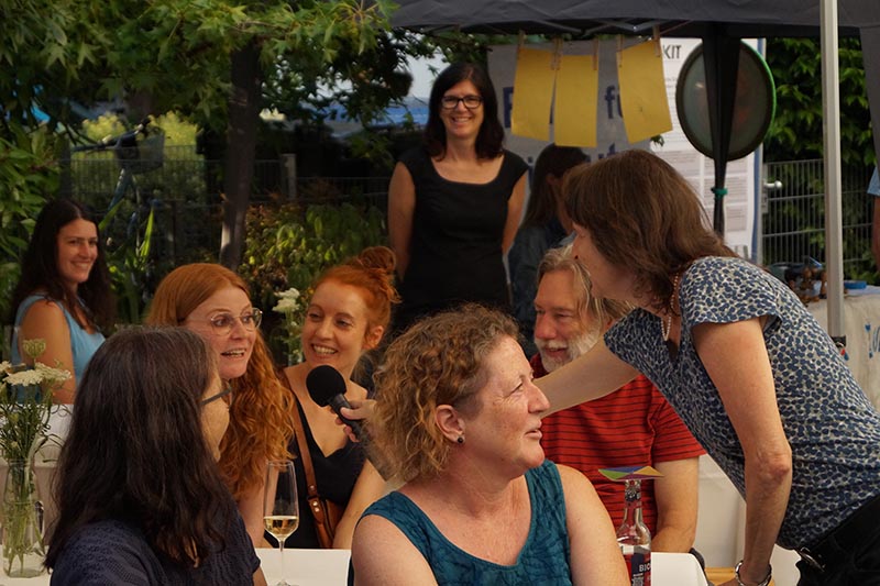 Am Donnerstag durften wir dann zahlreiche Gäste vom KIT, aus der Oststadt und darüber hinaus bei uns im Zukunftsraum zur Feier „10 Jahre Zukunftsraum“ begrüßen. Besonders freuten wir uns über die Teilnahme und Glückwünsche von Professorin Dr. Kora Kristof, Vizepräsidentin Digitalisierung und Nachhaltigkeit am KIT, Prof. Dr. Armin Grundwald, Leiter des Instituts für Technikfolgenabschätzung und Systemanalyse (ITAS) und Stadtrat Aljoscha Löffler, Vorsitzender der Grünen-Gemeinderatsfraktion der Stadt Karlsruhe. Gemeinsam mit weiteren Gästen und Zukunftsraum-Freunden feierten wir bei schönstem Sommer-Wetter das zehnjährige Bestehen des Zukunftsraums. Bei Musik und Essen wurden die Ereignisse des letzten Jahrzehnts Revue passiert und die Meilensteine und Erfolge feierlich gewürdigt.